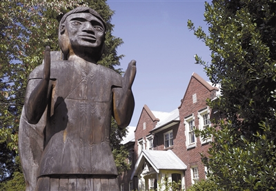 这是8月10日拍摄的加拿大北温哥华“圣保罗印第安寄宿学校”旧址内的纪念碑。加拿大不列颠哥伦比亚省的三个原住民部族10日宣布,将对位于北温哥华的“圣保罗印第安寄宿学校”旧址展开调查。