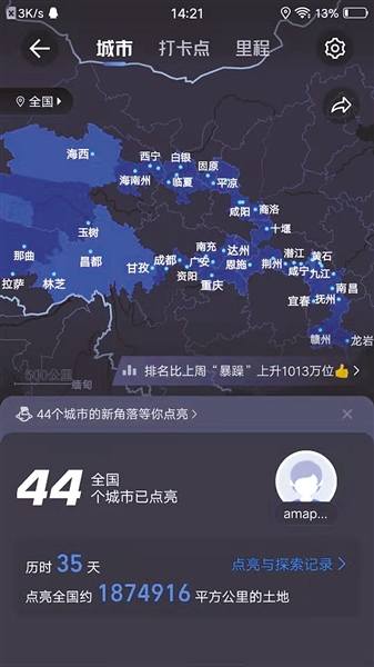 高德地图记录下董鹿鸣的骑行路线。