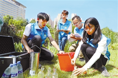 闽西职业技术学院积极参与河长制建设,助力龙岩文明城市创建,组织实践队在龙岩市区小溪河流域开展为期两天的“青春小溪河 小禹伴我行”暑期社会实践活动。昨日,实践队前往小溪河莲南桥段、芦田底段、王庄桥段进行了巡河护河及拾垃圾行动,对小溪河段河水进行现场采样和检测分析,到莲庄社区开展入户和集中宣传河长制和保护水环境活动。