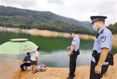 连日来,市公安局永定分局主动作为,坚决把人民利益放在首位,贯彻“人民至上、生命至上、安全至上”的理念,全面开展景区和非景区景点安全整治专项行动,截至8月30日,共劝离靠近危险区域人员321人次,排除安全隐患23处,图为民警劝导在龙湖休闲、垂钓人员离开危险区域时的情景。 通讯员 张春波 黄金霞 摄