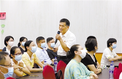 8月31日,市委宣传系统党委邀请全国文明家庭获得者、市家庭教育讲师团成员廖志添为宣传系统党员干部及共建社区苏溪社区党员干部作《家庭家教与家风》专题辅导。图为专题辅导现场。