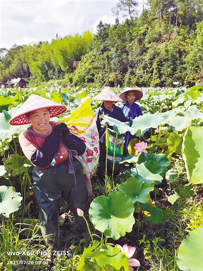 近日,长汀县馆前镇汀东村百亩莲藕塘内,藕农正在采收莲藕,一派忙碌景象。近年来,该村依托当地生态优势,大力发展绿色莲藕等特色种植产业,打造集生态观光、农业体验为一体的现代农业示范基地,实现乡村旅游与农业发展双丰收。 通讯员 黎寿钦 摄