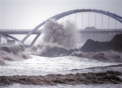 浙江舟山:14号台风“灿都”带来大风大浪