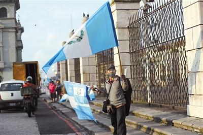 9月14日,在危地马拉首都危地马拉城,一名男子售卖危地马拉国旗。萨尔瓦多、危地马拉、洪都拉斯、尼加拉瓜和哥斯达黎加于9月15日庆祝独立200周年。这5个国家原来都是西班牙殖民地,于1821年9月15日宣布独立。