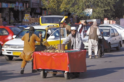 9月15日,商贩推车走在阿富汗首都喀布尔街头。 新华社 发
