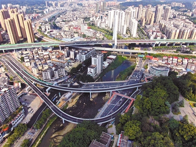龙岩中心城区实施“一环一轴四纵五横”路网建设,去年以来成效显著,继龙岩大桥通车后今年“七一”前夕罗桥节点改造工程又通车。 记者 傅长盛 摄