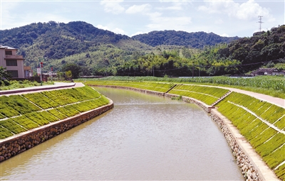 结合煤矸石整治,实施农村区域性小流域治理后的大吉村防洪堤一角。