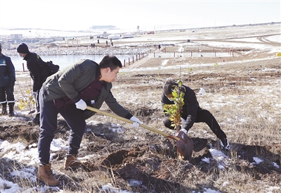 10月10日,人们在蒙古国首都乌兰巴托市纳来哈区植树。蒙古国总统呼日勒苏赫10日来到首都乌兰巴托市纳来哈区,与驻蒙古国的外国使节、国际组织工作人员以及蒙古国各界代表等数百人参加了植树活动。这意味着该国种植“十亿棵树计划”全面启动。 新华社发