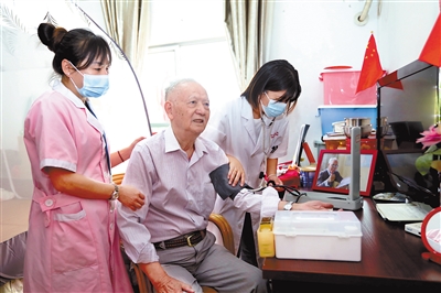 龙岩市同心圆(香港)护理院的医生在为老人检查身体。