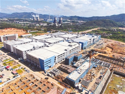 新罗区引进港资在雁石镇建设新兴轻纺工业园,占地面积约575亩,总投资约30亿元,建成后可实现年产各类纺织品1.5万吨以上。目前,该项目厂房已全面封顶,厂房外部装修已基本完成,正在进行厂房内部装修和配套设施建设。其中,A栋2楼正在安装调试设备,进行试投产。图为日前园区施工场面。 记者 傅长盛 通讯员 温连光 摄
