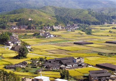 2007年10月拍摄的朋新村,图片下部砖屋为袁子钦将军故居。