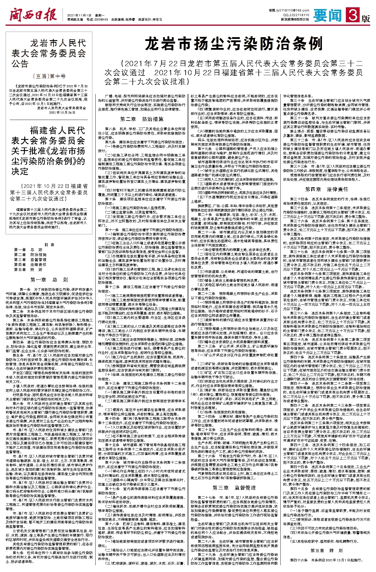 福建省人民代表大会常务委员会关于批准《龙岩市扬尘污染防治条例》的决定