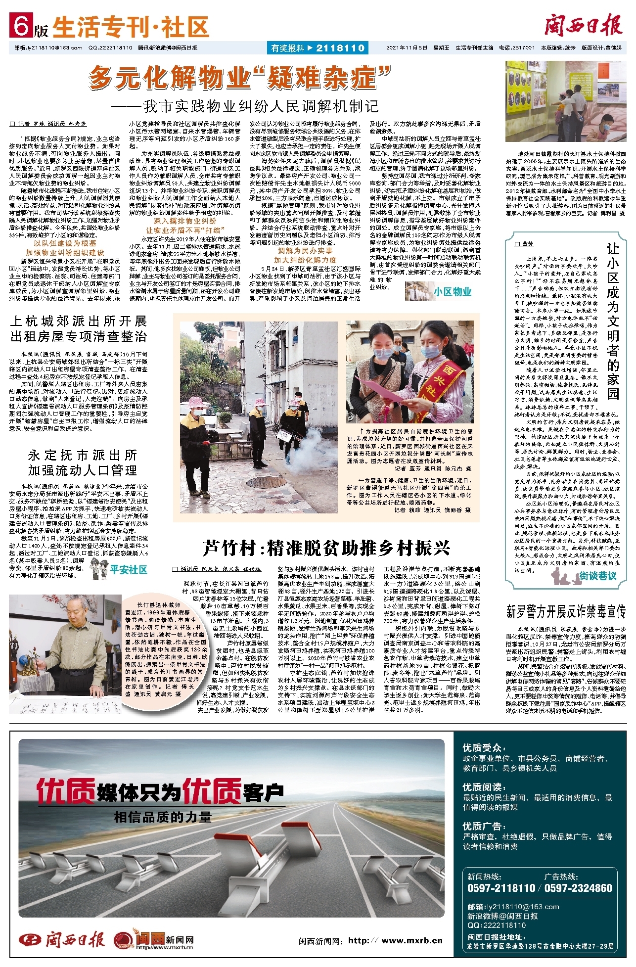 新罗区恒兴绿景小区在开展“在职党员回小区”活动中,发挥党员特长优势,将小区业主中的检察院、法院、司法局、住建等部门在职党员或退休干部纳入小区调解室专家库成员,为小区调解室调解邻里纠纷、物业纠纷等提供专业的法律意见。去年以来,该小区党建指导员和社区调解员共排查化解小区污水管网堵塞、自来水管爆管、车辆管理无序等问题引发的小区矛盾纠纷160多起。