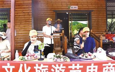 我市举办的文化旅游节上开展电商直播带货。记者 石芳 摄