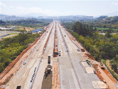 市重点民生项目龙岩大道四期道路全长1777.54米,道路修建宽度78米,其中青云路至北三环标段890米于去年秋季开始施工,经过一年的建设路基全面完成,开始路面施工,有望在明年春节前后投入使用,届时将极大改善北部城区交通环境。图为日前,龙岩大道青云路至北三环标段路面施工场面。记者 傅长盛 摄