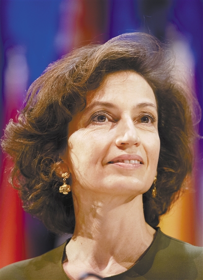11月9日,联合国教科文组织现任总干事奥德蕾·阿祖莱在法国巴黎出席第41届联合国教科文组织大会。联合国教科文组织9日发表公报说,该组织现任总干事奥德蕾·阿祖莱当天以绝对优势获得连任。 新华社 发