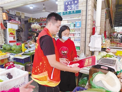 近日,新罗区南城街道溪南社区在辖区组织开展“扫黄打非”宣传巡查工作,进一步净化社区文化环境,努力营造积极平安健康的社会文化环境,树立健康向上的社会风尚,引导居民、商户拒绝各种有害思想和低俗文化侵蚀。图为宣传活动现场。记者 罗玉文