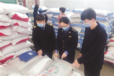 12日,为推进粮食市场秩序专项整治,严厉打击粮食购销领域扰乱市场秩序和违法交易行为,切实维护粮食收购和流通秩序,新罗区市场监管局开展全区粮食市场秩序专项检查。图为执法队员到粮食企业进行专项检查。