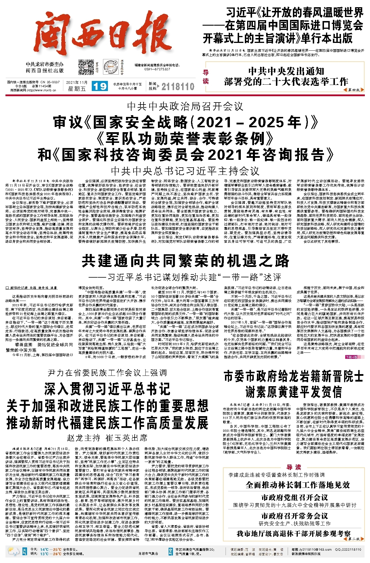 审议《国家安全战略(2021-2025年)》《军队功勋荣誉表彰条例》和《国家科技咨询委员会2021年咨询报告》