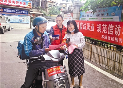 15日,新罗西城苏溪社区开展以“畅通信访渠道 规范信访秩序”为主题的信访宣传活动,以增强群众依法信访观念,引导群众通过正常途径反映诉求,理性维权。活动为辖区群众认真解读了《信访条例》,发放宣传手册,宣传“如何维护信访人的合法权益”和“规范信访行为”等方面的相关知识。