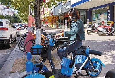 为深入推进党史学习教育“我为群众办实事”实践活动,近日,武平县投放近300台“有桩P点停车”共享电动自行车,首批在武平县城区、高新技术产业园建51个停车点位、290个停车桩,有效解决群众出行难问题。图为市民正在扫码骑行共享电动自行车。 记者 郭亦斌 通讯员 吴常生 摄