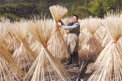 11月14日,长汀县庵杰乡湖口村,村民趁晴好天气晾晒竹筷半成品。该乡因地制宜种植速生毛竹,形成毛竹种植、加工、销售的竹产业链,吸纳村民就业,拓宽增收渠道。通讯员 黎寿钦 摄