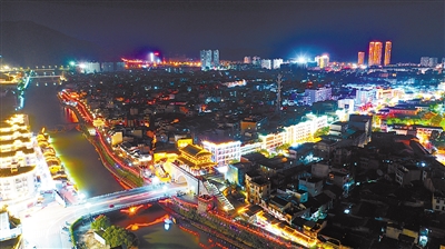 长汀县城夜景。