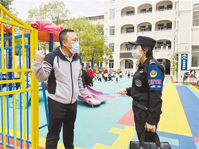 连日来,长汀县公安局巡特警大队组织民警、辅警前往辖区中小学校、幼儿园开展防火、防盗、防疫情输入等安全领域检查,开展治安隐患排查。截至22日,该大队深入8所校园开展检查,当场排除整改安全隐患苗头3处,散发各类安全防范宣传材料2300多份。图为民警深入校园了解校园治安情况时的情景。 通讯员 张菡珏 摄