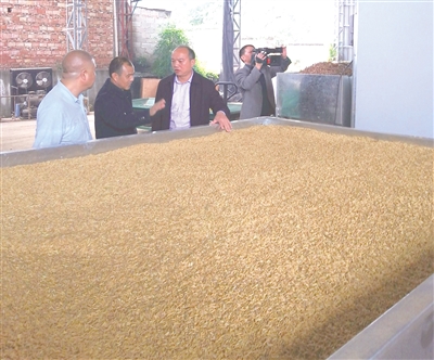 为解决长汀县农民和种粮大户晒粮难问题,长汀县供销社积极引导合作社建立粮食烘干中心,目前全县日烘干能力达到4000吨,为农户提供了方便,减少了粮食霉变和晾晒过程中的二次污染问题,确保了粮食安全。图为日前河田镇融万家农民专业合作社的18台烘干机满负荷运行,每天烘干能力可以达到160吨。 记者 傅长盛 摄