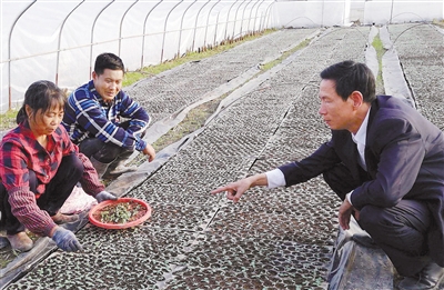 “气温升高时要及时通风,抓紧疏苗补苗。”连日来,连城县北团烟草站科技人员深入283个烟苗大棚指导幼苗管理。据介绍,北团镇已落实2022年全镇8505亩烤烟种植合同。图为11月26日,科技人员黄梦旺走进拥有11个大棚的烟苗大户、老营村罗家禄的育苗大棚指导幼苗管理。 通讯员 邹善水 摄