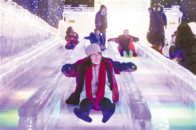 12月21日,市民在冰雪艺术节现场体验冰雪互动项目。当日,“圆梦冬奥、同享未来”第八届全国大众冰雪季冰雪艺术节在武汉光谷国际网球中心开幕。现场布置了充满荆楚文化特色的冰雕展览、冰雪互动等项目,让人们感受冰之美、雪之趣。