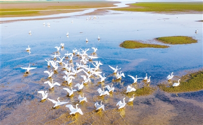 近年来,江西省加大对九江市鄱阳湖生态环境保护力度,每年来此越冬的候鸟种类和数量逐年增多。成群的小天鹅在鄱阳湖都昌湿地栖息、觅食,宛如一首优美的冬舞曲。 (人民网)