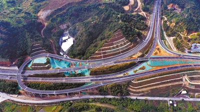 22日上午,东环高速公路顺利实现主线全线双幅贯通!目前,东环高速公路建设已进入最后冲刺阶段,主线路基、桥梁、隧道主体工程已全部完成,曹溪段、铁山段已进入交工验收阶段,建设者们正加班加点全力加快推进路面、交安、机电和房建工程。图为昨日空中航拍曹溪互通。记者 郭亦斌 罗玉文 通讯员 曾枫 黄行煦 摄