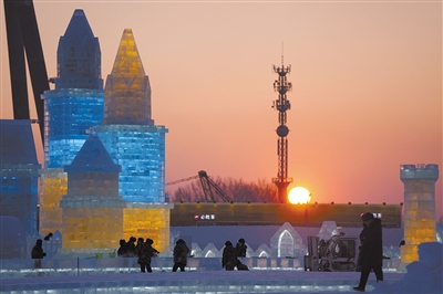 12月23日,工人在哈尔滨冰雪大世界园区施工。第二十三届哈尔滨冰雪大世界以“冬奥之光,闪耀世界”为主题,园区占地面积82万平方米,景观建设面积40万平方米。目前,冰雪大世界园区正在加紧施工,预计于12月25日开园迎客。 新华社记者 王建威 摄