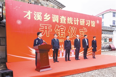 图为2021年11月18日,才溪乡调查统计研习馆在才溪乡调查旧址群隆重开馆。福建省统计局党组书记、局长叶飞文,国家统计局福建调查总队副总队长王江明,龙岩市委常委、副市长牟科发出席开馆仪式。