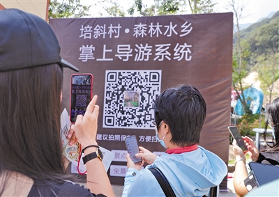 在培斜村村口的大门口,一个大大的智慧旅游二维码就张贴在门框上,到这里的游客只要用手机扫描一下二维码,线路怎么走、怎么玩、景点如何……一切尽入眼中。