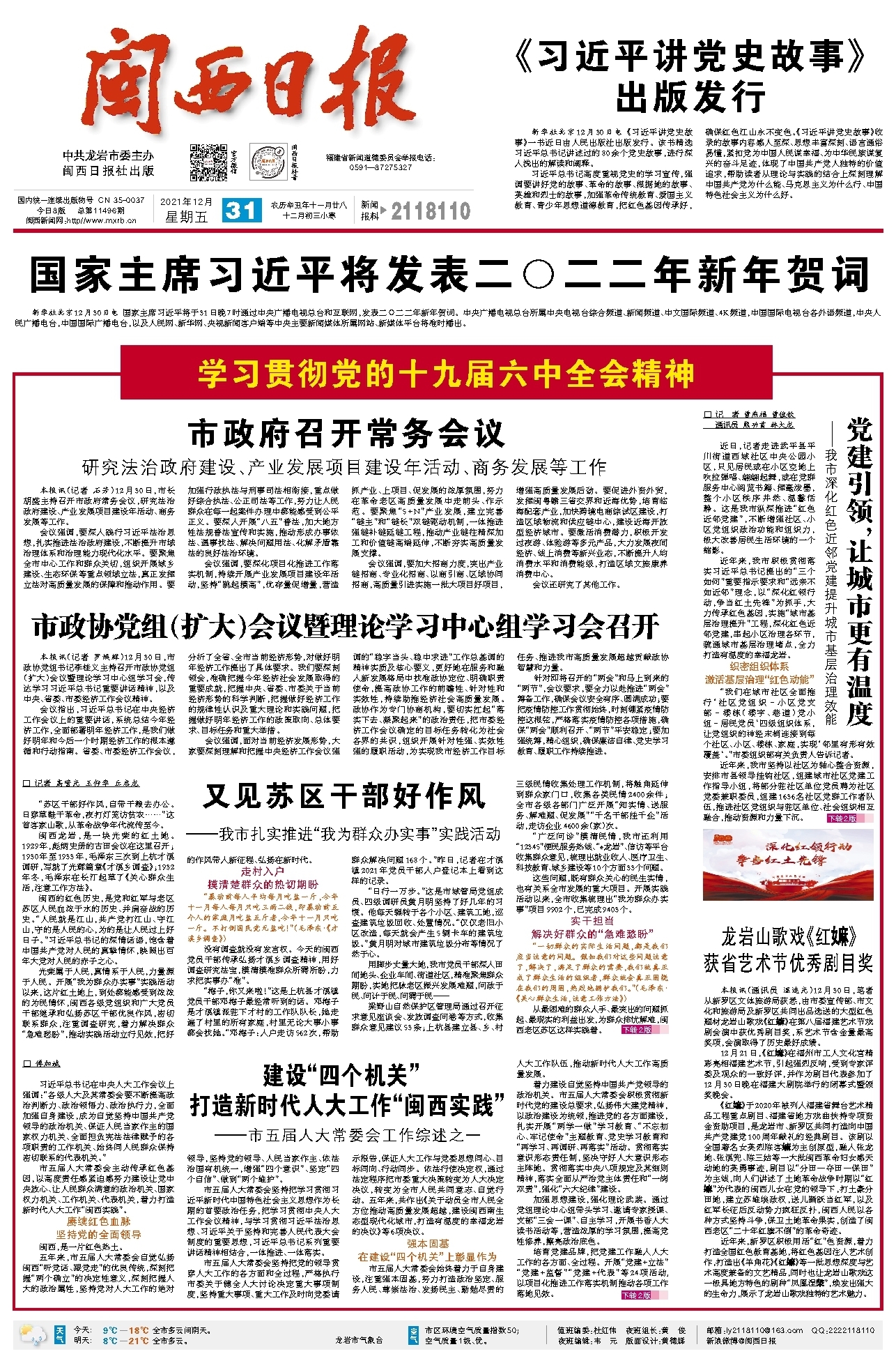 市五届人大常委会主动传承红色基因,以高度责任感紧迫感努力建设让党中央放心、让人民群众满意的政治机关、国家权力机关、工作机关、代表机关,着力打造新时代人大工作“闽西实践”。