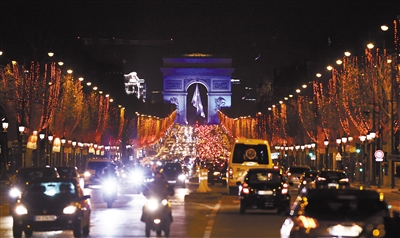 2022年1月1日,法国巴黎凯旋门被蓝色灯光点亮。当日,法国首都巴黎及其他城市的地标建筑相继点亮象征欧盟旗帜颜色的蓝色,庆祝法国轮任欧盟主席国。2022年1月1日起,法国接任欧盟理事会轮值主席国,为期半年。 新华社记者 高静 摄