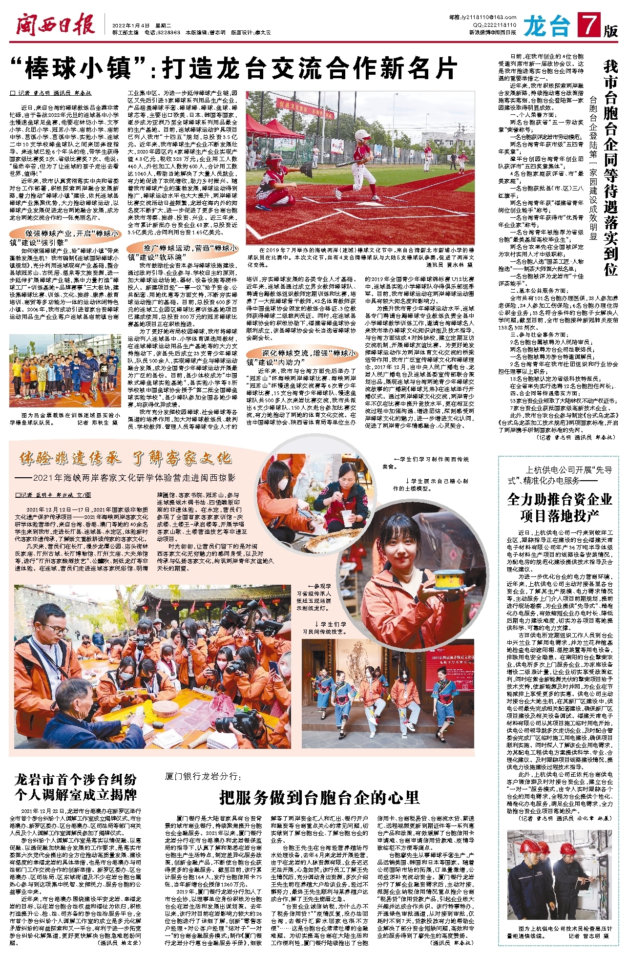 近年来,我市认真贯彻落实中央和省委对台工作部署,积极探索两岸融合发展新路,着力推动“棒球小镇”建设,依托连城县棒球产业集聚优势,大力推动棒球运动,以棒球产业发展促进龙台两地融合发展,成为龙台两地交流合作的一张亮丽名片。