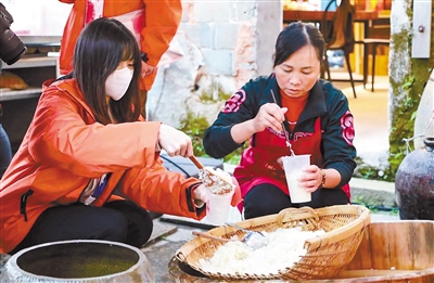 学生们学习制作闽西传统美食。