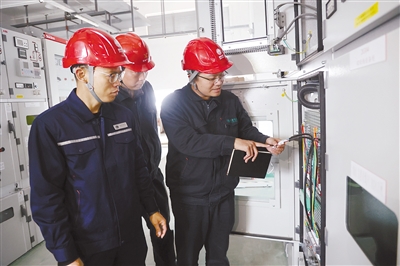 图为上杭供电公司技术员检查高压计量柜通信线缆。 记者 曾志明 摄