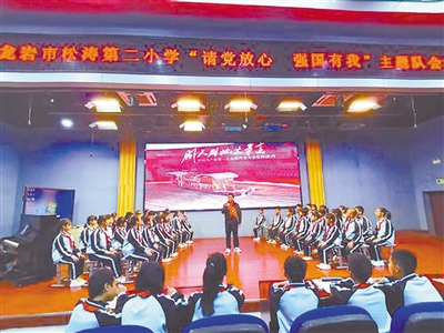 日前,龙岩市松涛第二小学邀请了福建省优秀少先队辅导员、省红领巾巡讲团成员廖志添为少先队员们开设以 “请党放心 强国有我”为主题的微党课。少先队员们在活动中接受了一次生动、深刻的党史教育。 记者 罗姝 通讯员 修昱玲 摄