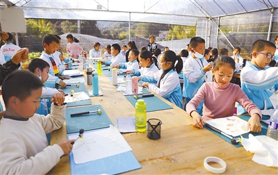 2021年以来,武平县中小学生教育实践基地与“中国林改第一村”——武平万安镇捷文村对接,定期组织中小学学生前来村里参观林改科教馆,学习生态文明知识和“两山”理论,接受大自然熏陶和爱国主义教育。图为日前基地组织的小学生在捷文村生态实践活动。记者 傅长盛 摄