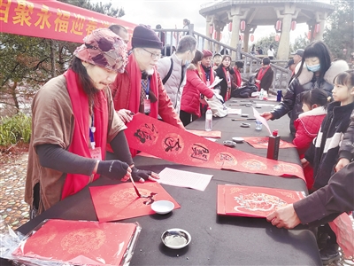 近日,在漳平永福百福园内,两岸知名书画家现场挥毫为群众写“福”、送“福”,名家所创作的“福”字尽管各不相同,却都传递出同样的温暖祝福。 记者 杨燕 赖韦元 摄