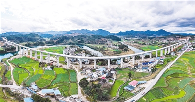 1月22日拍摄的贵南高铁(贵州段)营盘清水河双线特大桥建设场景(无人机全景照片)。目前,由中铁三局等单位建设的贵(贵阳)南(南宁)高铁施工进展顺利,各项工程有序推进。贵南高铁设计时速350公里,是我国“八纵八横”高速铁路主通道包头至海口通道的重要组成部分。 新华社记者 杨文斌 摄