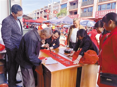 1月21日,年味渐浓,正值上杭县庐丰畲族乡“圩天”,上杭县人民法院庐丰法庭法官深入集市,开展以“司法福见”为主题的法治宣传和送“福”活动,将法治和“福”文化相结合,送出法官书写的“福”字联,助力营造新春佳节浓厚的“福”文化氛围。当天,共送“福”字100余幅、春联20多对。 通讯员 陈立烽 刘玉雯 摄