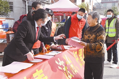 日前,连城法院与公安、司法等部门深入揭乐乡,联合当地党委政府,在乡镇主要街道摆摊设点,开展禁毒、扫黑除恶等专项普法宣传活动。图为普法现场。