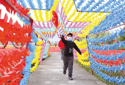 风车转起来,“福”气迎面来。春节期间,许多市民到古田踏青郊游,古田花海欢乐谷举办的“七彩风车节”为古田红色旅游增添了不少活力,游客们在风车组成的花海里坐小火车、穿越风车隧道、荡秋千……欢乐谷里充满了欢乐的笑声。