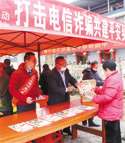 为普及防范电信网络诈骗犯罪常识,提高群众防诈意识和能力,增强风险防范意识,长汀县农业银行日前到馆前镇坪埔沈家大院开展预防电信网络诈骗共建平安乡村宣传活动。图为宣传活动现场。 通讯员 黎寿钦 摄