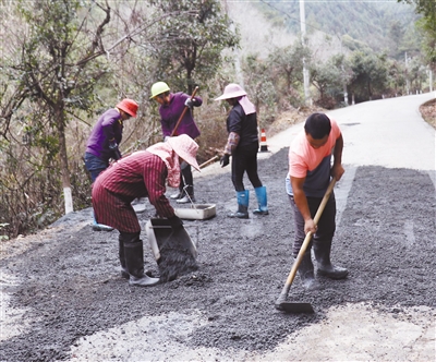 春节前夕,针对长汀县馆前镇至童坊镇红明村乡村道路部分路段路面出现裂缝、坑洞、沉降等公路病害,长汀公路中心加大养护人员和机械设备投入力度,积极开展路面病害处治、修补等工作,目前已完成路面病害处治10余处,确保春运期间群众和过往车辆的出行安全。图为1月7日,养路工人在实施路面修补。 通讯员 黎寿钦 摄